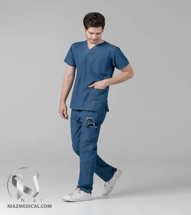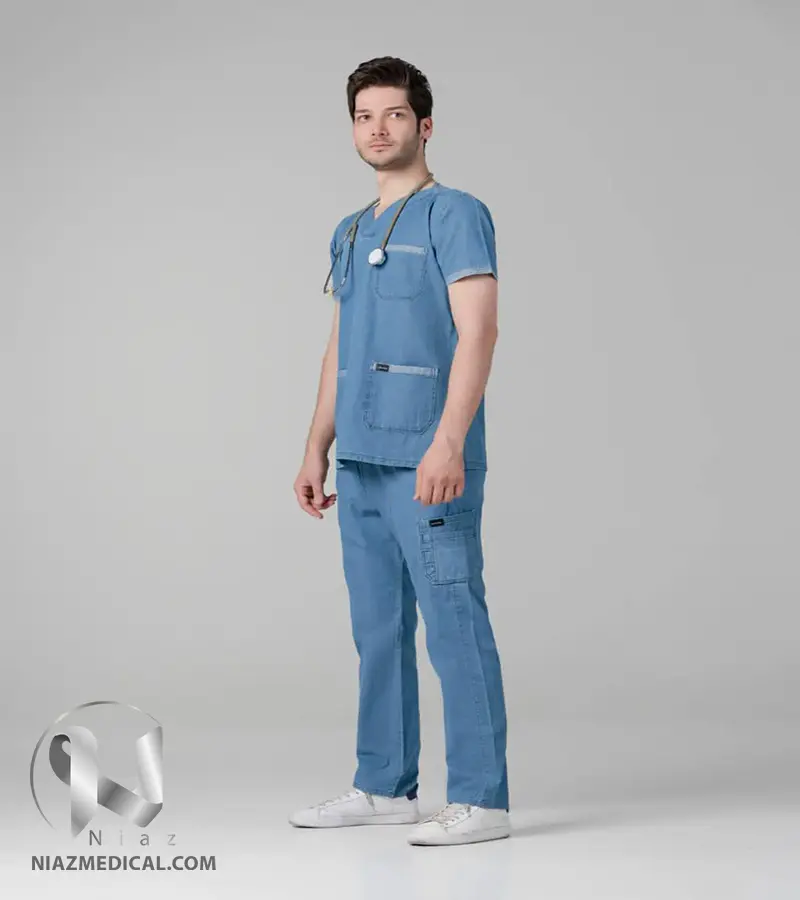 اسکراب نیاز مدیکال که مورد علاقه پرستاران در سراسر ایران است، از پارچه کشسان چهار طرفه و سبک وزن، ضد رطوبت تولید شده است . این مجموعه دارای تاپ های اسکراب مردانه و زنانه یقه V، شلوار اسکراب جوگر و شلوار سبک کارگو است.