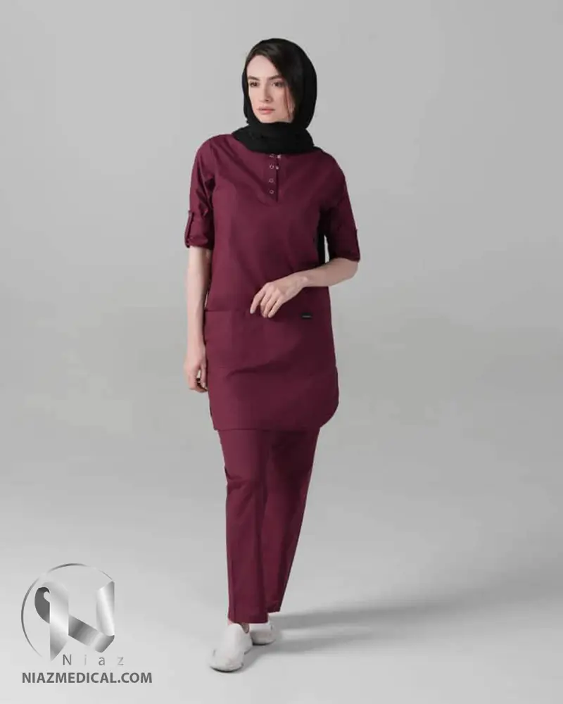 راحت، سبک ، نرم، شیک و ساده در عین حال رطوبت را از بدن دور می کند و در یک شیفت کاری طولانی راحت است. قابل شستشو، مقاوم در برابر چین و چروک نیاز به اتوکشی مکرر ندارد. دو جیب جادار در جلو فضای ذخیره سازی وسایل از جمله خودکار، تلفن همراه، گوشی پزشکی و غیره را برای شما فراهم می کند.