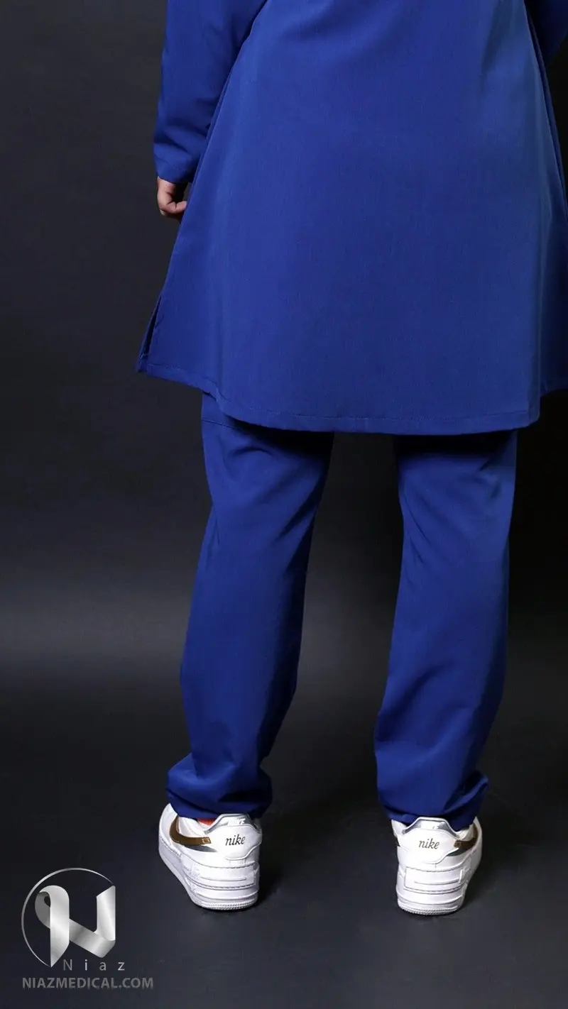 اسکراب زنانه که این روز ها در فرم تونیک و شلوار یا به نوعی بلوز و شلوار تولید می گردد با پارچه ترگال درجه یک با قابلیت شستشوی مداوم و عدم تغییر رنگ و جنس و بالاترین سطح کیفی در تولیدی نیاز مدیکال تولید می گردد